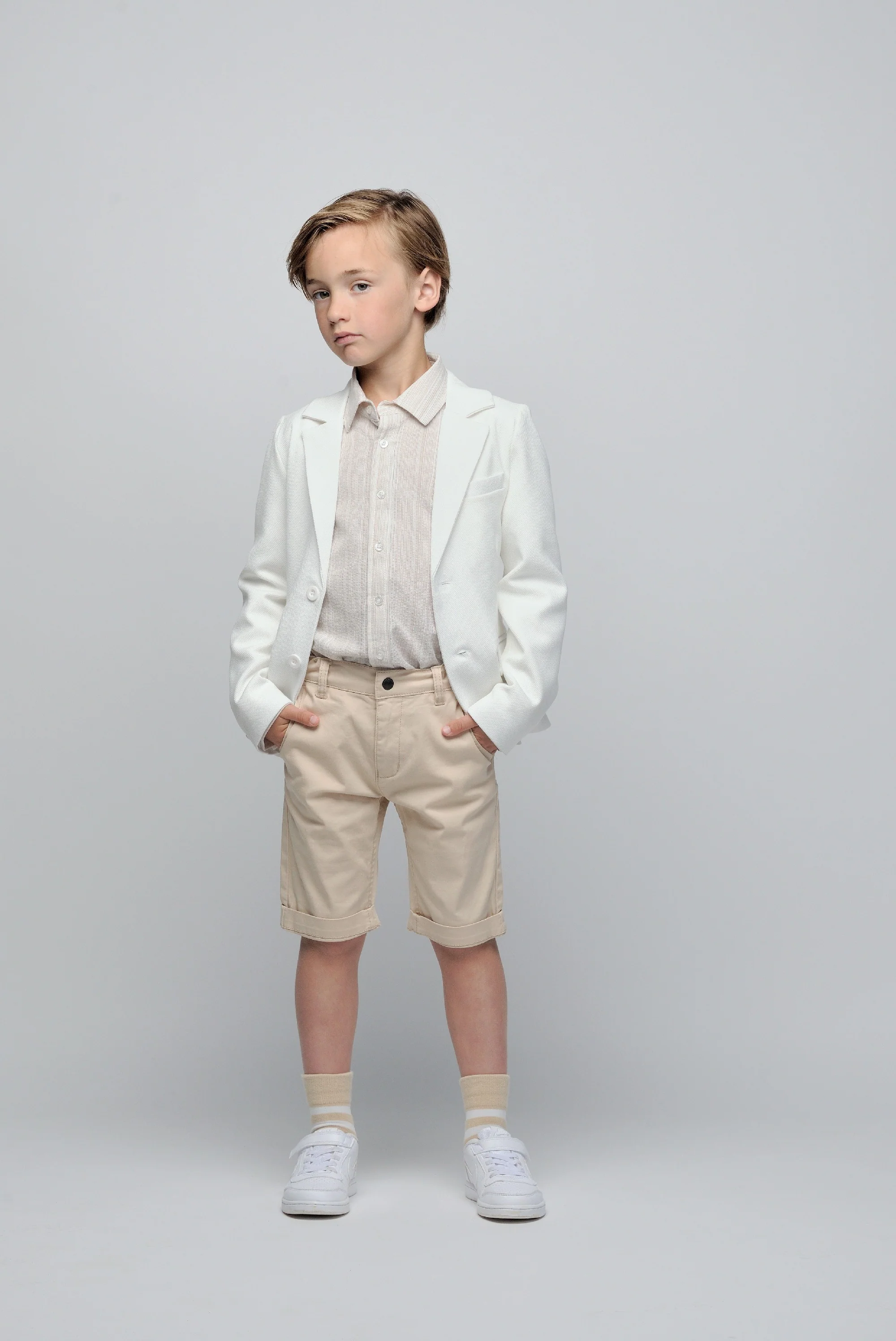 Een stijlvol en zomers overhemd in een fijne katoen-mix kwaliteit met streepjes. Voor elke gelegenheid waar jouw Garçon zich nou nét ietsje netter of feestelijker wil presenteren is deze blouse onmisbaar. ♦ Le Chic Garçon!