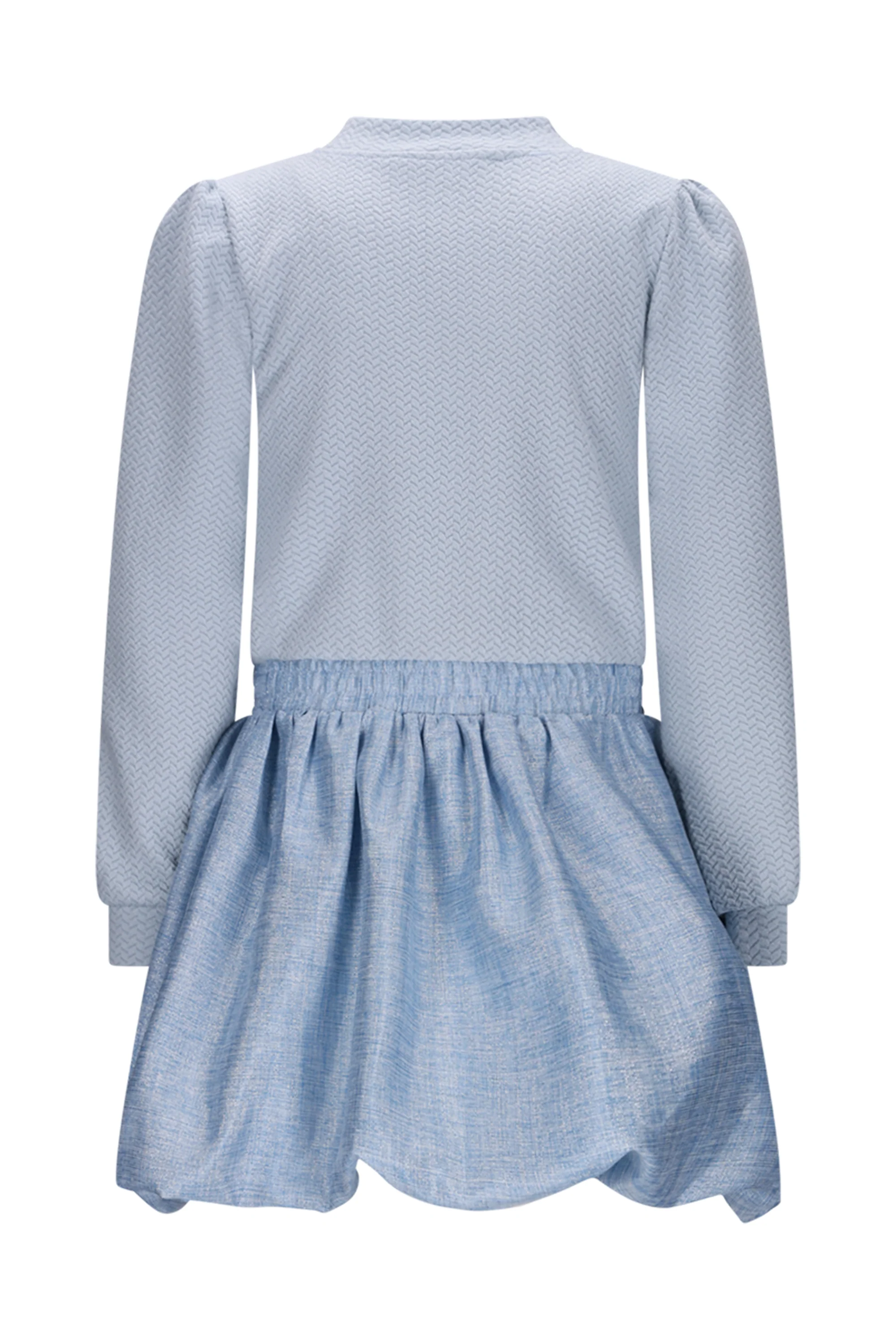 Deze blauwe jurk van Le Chic combineert comfort en elegantie moeiteloos. De zachte, knitted bovenkant voelt heerlijk aan en geeft veel bewegingsvrijheid, terwijl het glanzende ballonrokje in geweven stof een speelse en feestelijke touch toevoegt. Perfect voor zowel bijzondere gelegenheden als om een gewone dag extra speciaal te maken. ♥ Designed with Love by Le Chic.